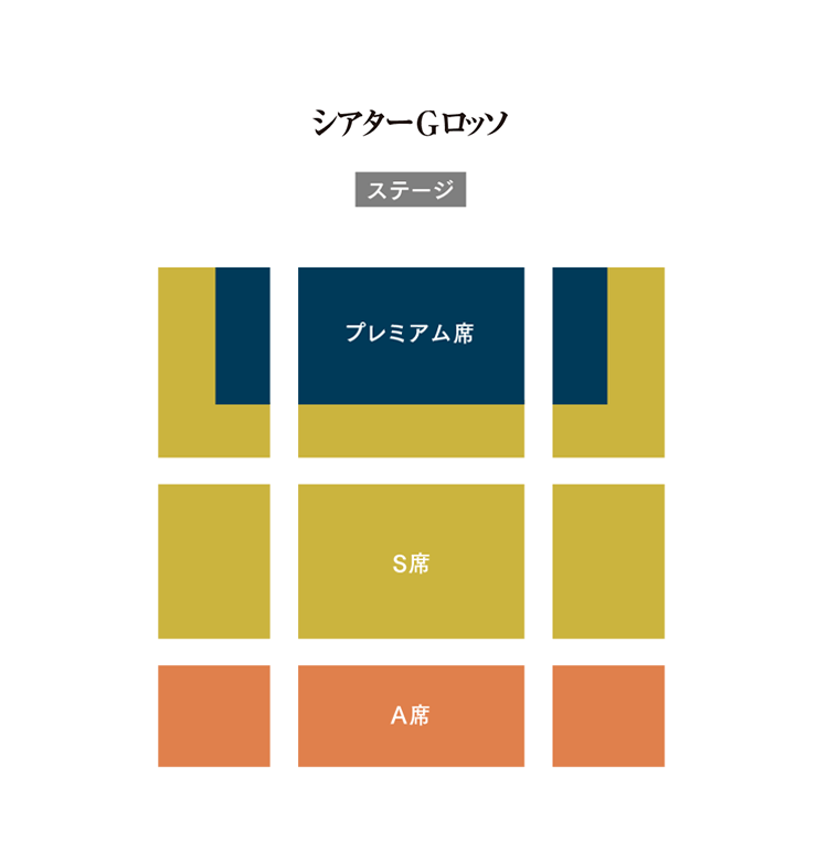 - ※補助席は、座席図面上には記載されていない席を追加してのご案内となります。補助席は、本席とは形状の異なる簡易的な席となります。 また補助席の一部では会場の特性上、若干前のめりになった状態でご覧いただく席や、一部舞台が見づらい席もございます。あらかじめご了承ください。